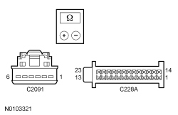 - Measure the resistance between HVAC module- DATC (Dual Automatic Temperature Control) C228A-7, circuit VH440 (BU/BN), harness side and LH temperature blend door actuator C2091-2, circuit VH440 (BU/BN), harness side.