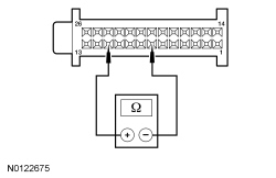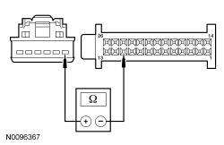 - Measure the resistance between HVAC module- DATC (Dual Automatic Temperature Control) C228A-10, circuit RH111 (GY/BU) and HVAC module- DATC (Dual Automatic Temperature Control) C228A-7, circuit VH440 (BU/BN), harness side.