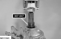 15. Assemble the Front Wheel Hub Oil Seal Installer and the Rear Bearing 4X2 Installer on the Drawbar and install the bearing in the transmission case.