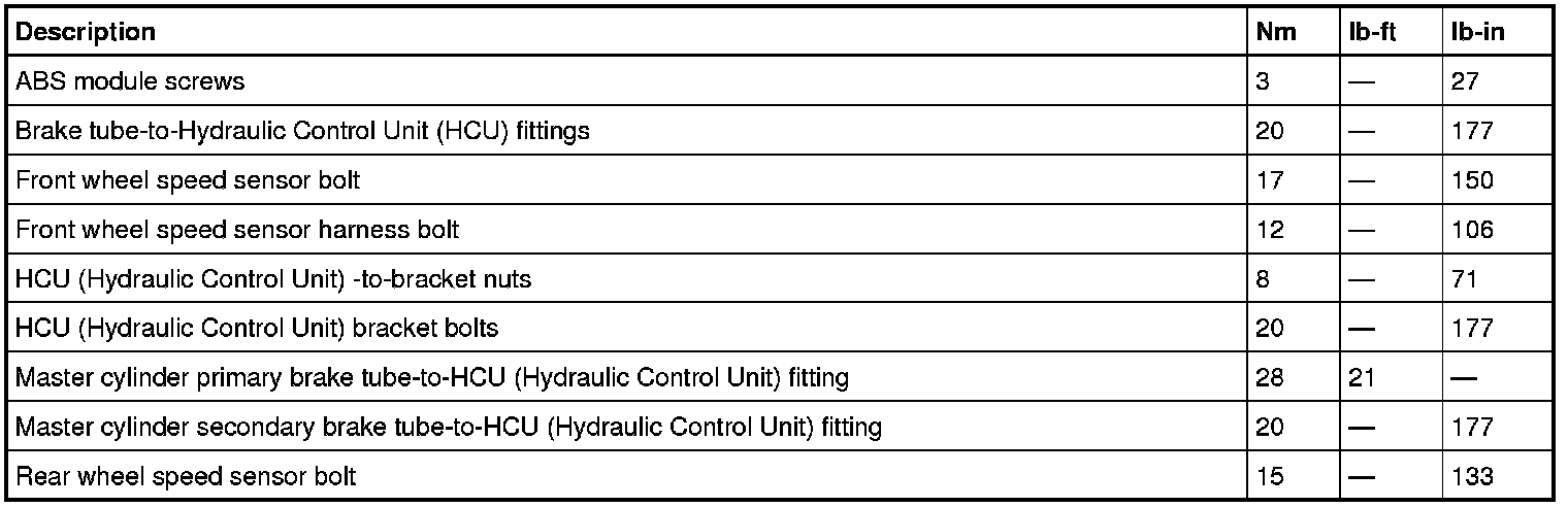 Torque Specifications