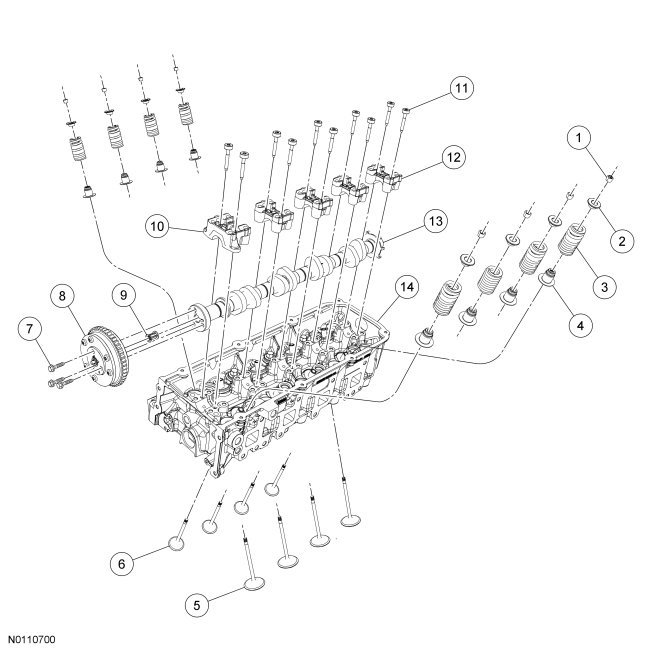 Intake and Exhaust Valves, Valve Springs, Valve Spring Retainer Keys and Retainers, Camshaft Phaser and Sprocket, VCT (Variable Camshaft Timing) System Oil Filter, Camshaft Bearing Caps and Camshaft