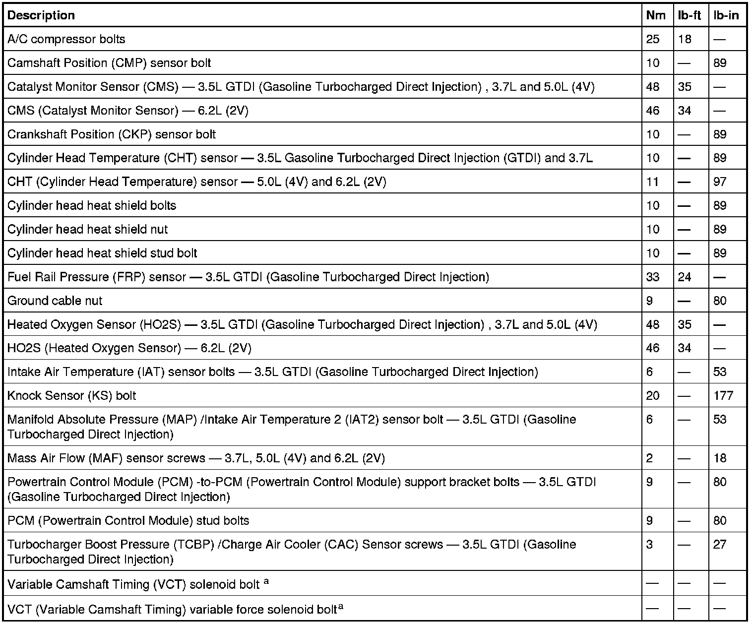Torque Specifications