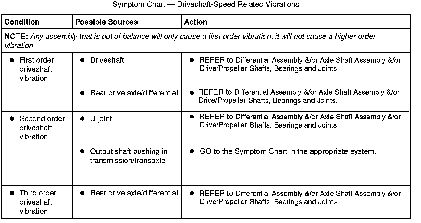 Symptom Chart - Driveshaft-Speed Related Vibrations