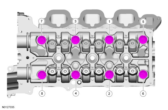 Cylinder HeadInstall a new gasket, the RH cylinder head and 8 new bolts. Tighten in the sequence shown in 5 stages: