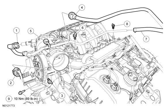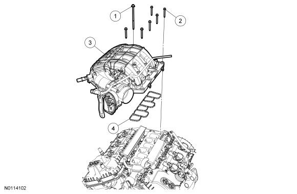 1. NOTICE: If the engine is repaired or replaced because of upper engine failure, typically including valve or piston damage, check the intake manifold for metal debris. If metal debris is found, install a new intake manifold. Failure to follow these instructions can result in engine damage.