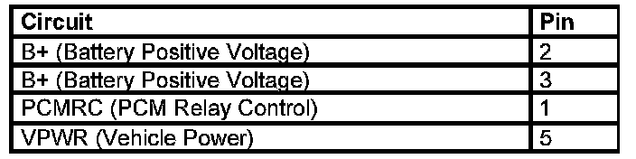 Powertrain Control Module Power (PCM Power) Relay Connector