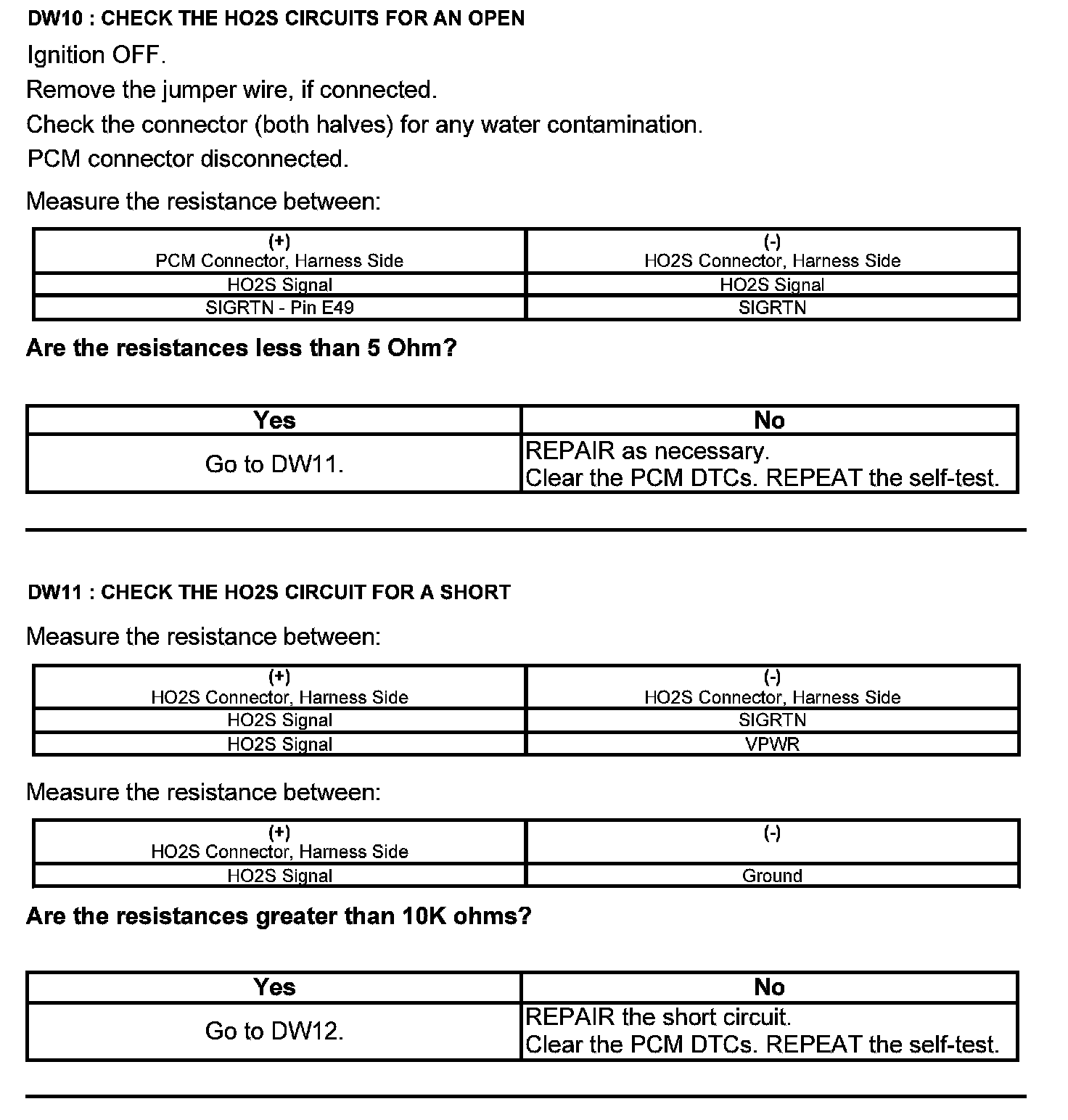 Test DW: Heated Oxygen Sensor (HO2S)