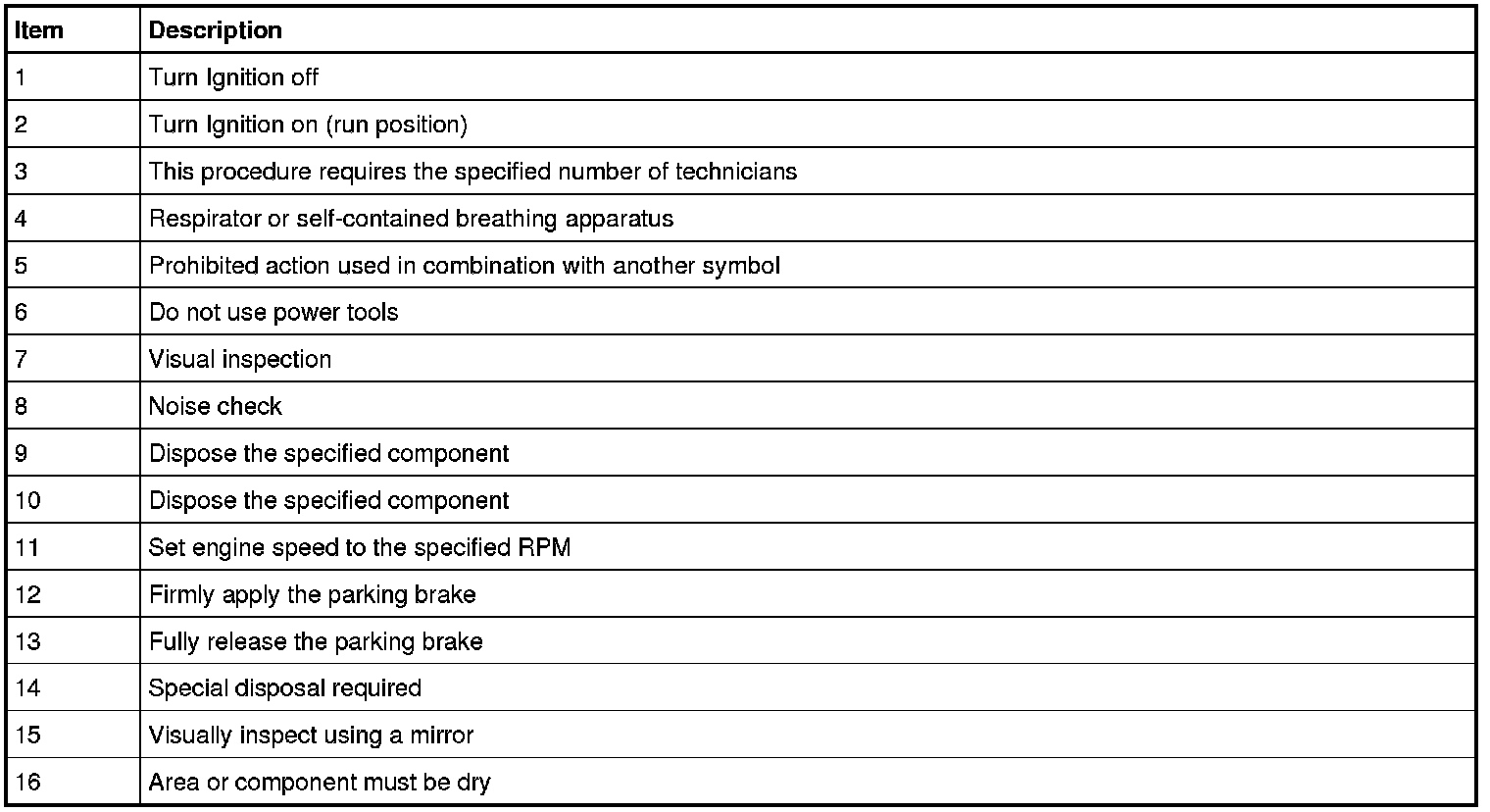 The apply chemicals, lubricants or clamping load symbols are used to direct the application of chemicals, lubricants, or loads for the procedure.