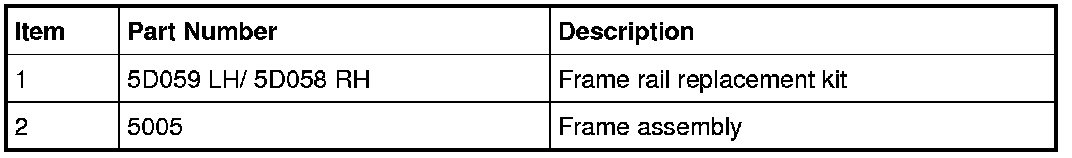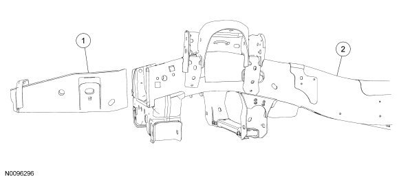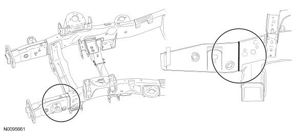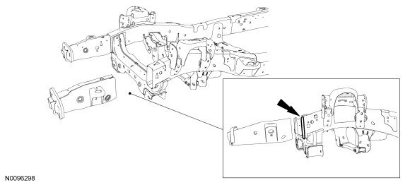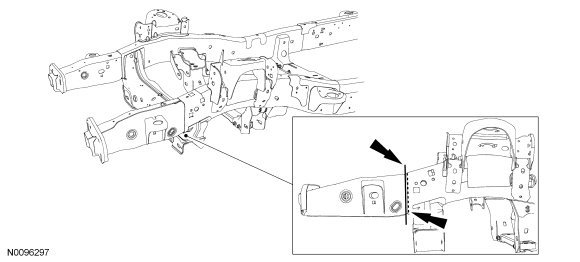 NOTE: The frame rail service component must be located to maintain original factory dimensions. For additional information, refer to Body Body for correct frame dimensional information.
