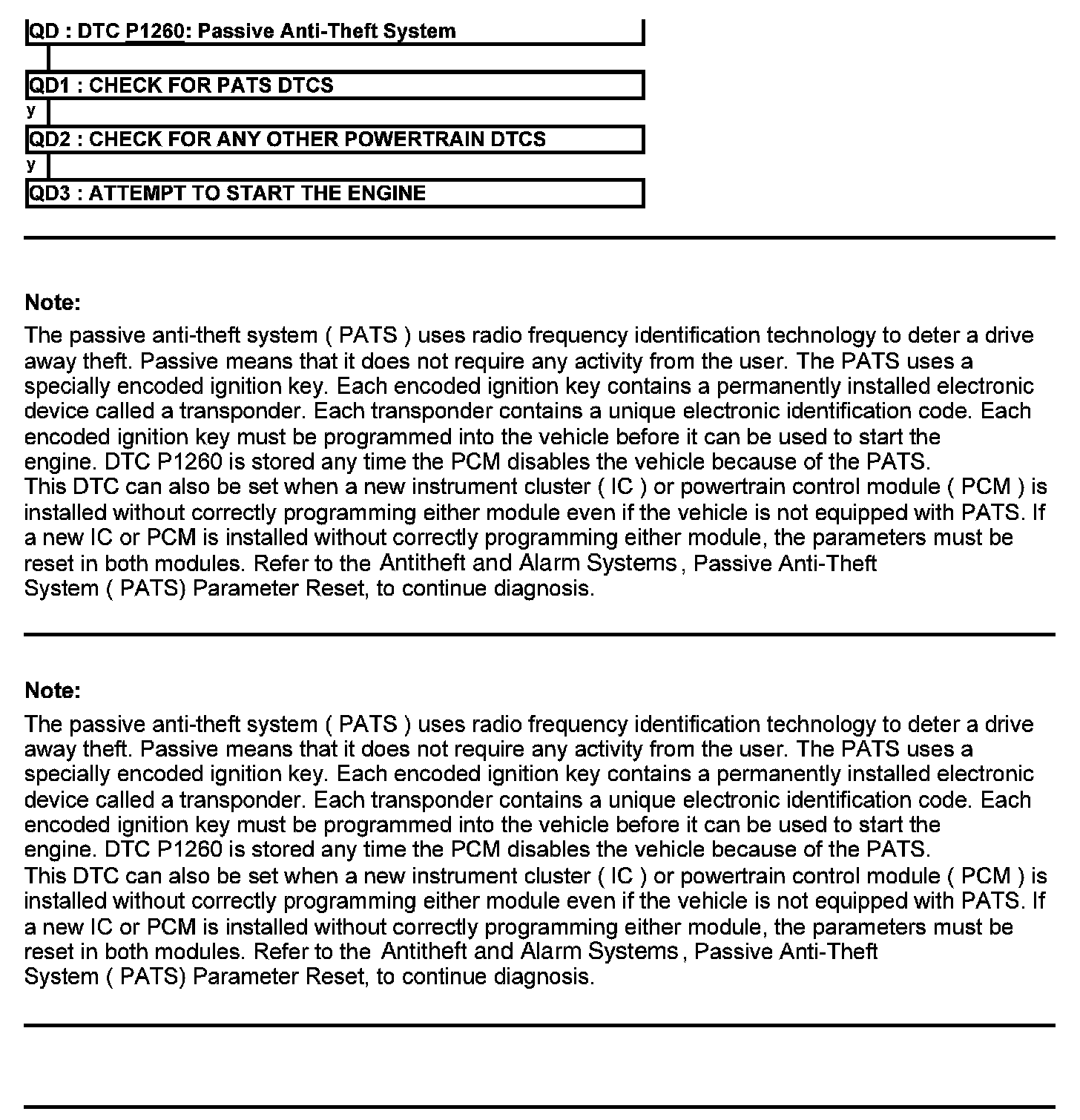 Test QD: DTC P1260: Passive Anti-Theft System