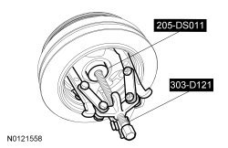 35. Using the 3 Jaw Puller and Step Plate, remove the crankshaft pulley.
