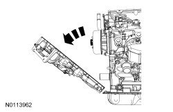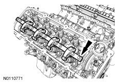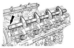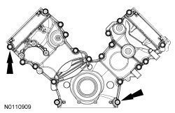 NOTICE: During engine repair procedures, cleanliness is extremely important. Any foreign material, including any material created while cleaning gasket surfaces that enters the oil passages, coolant passages or the oil pan, may cause engine failure.