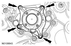 Remove the 8 bolts and the crankshaft rear seal retainer plate.