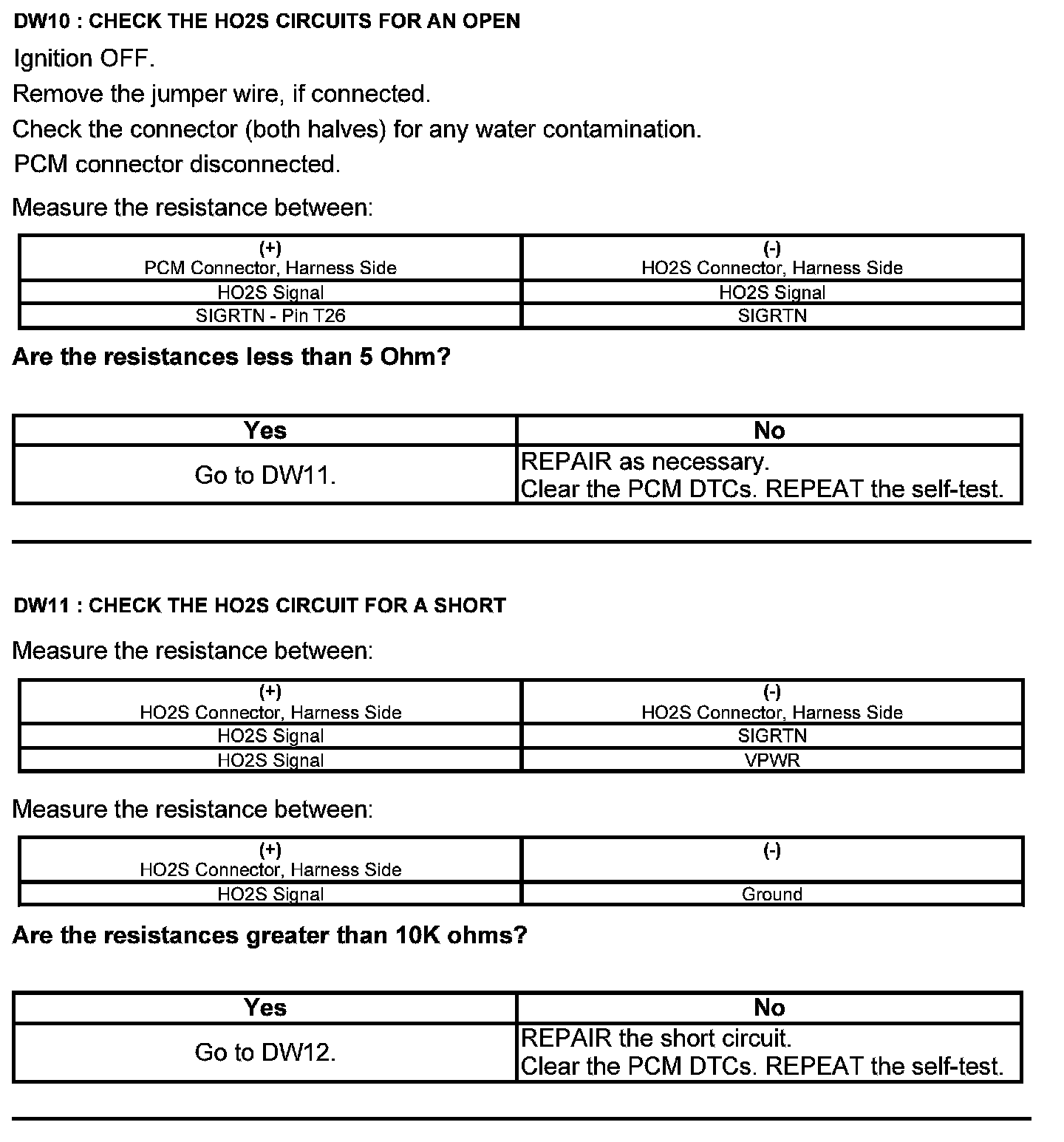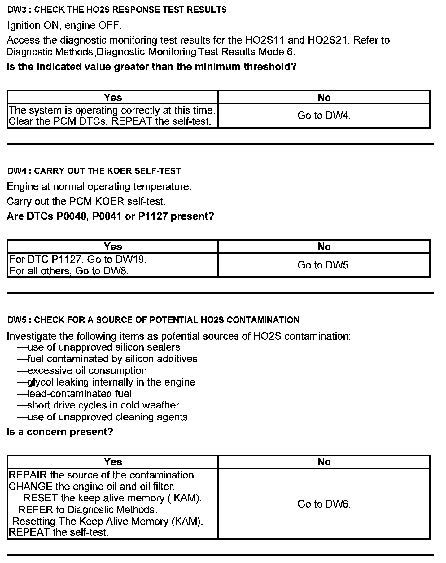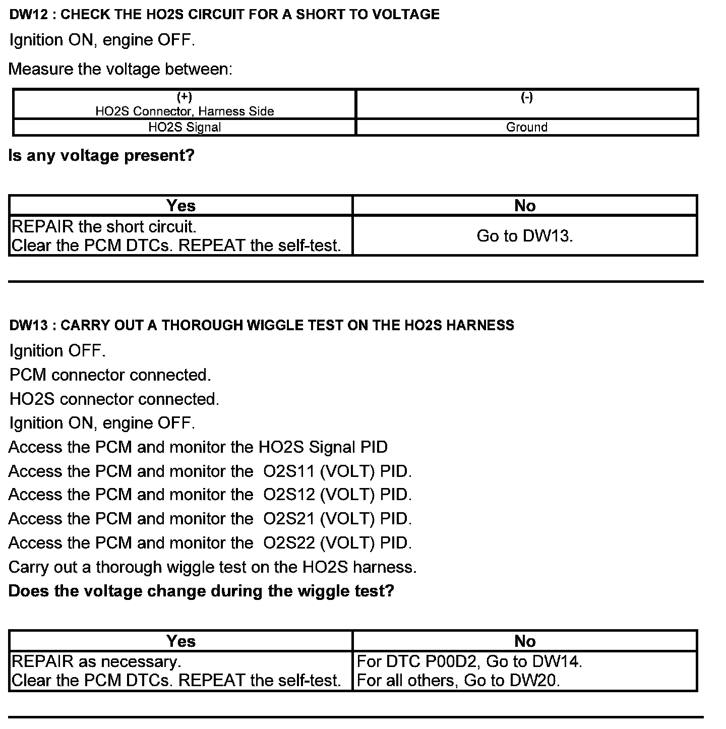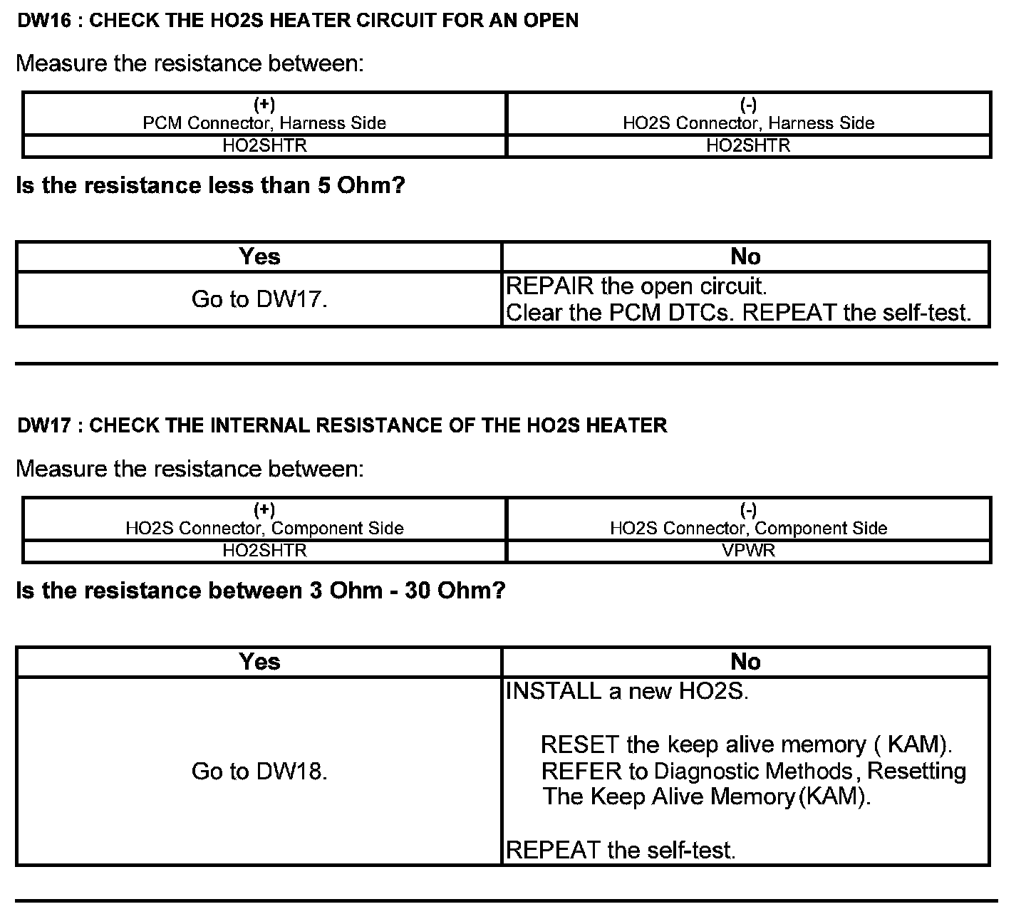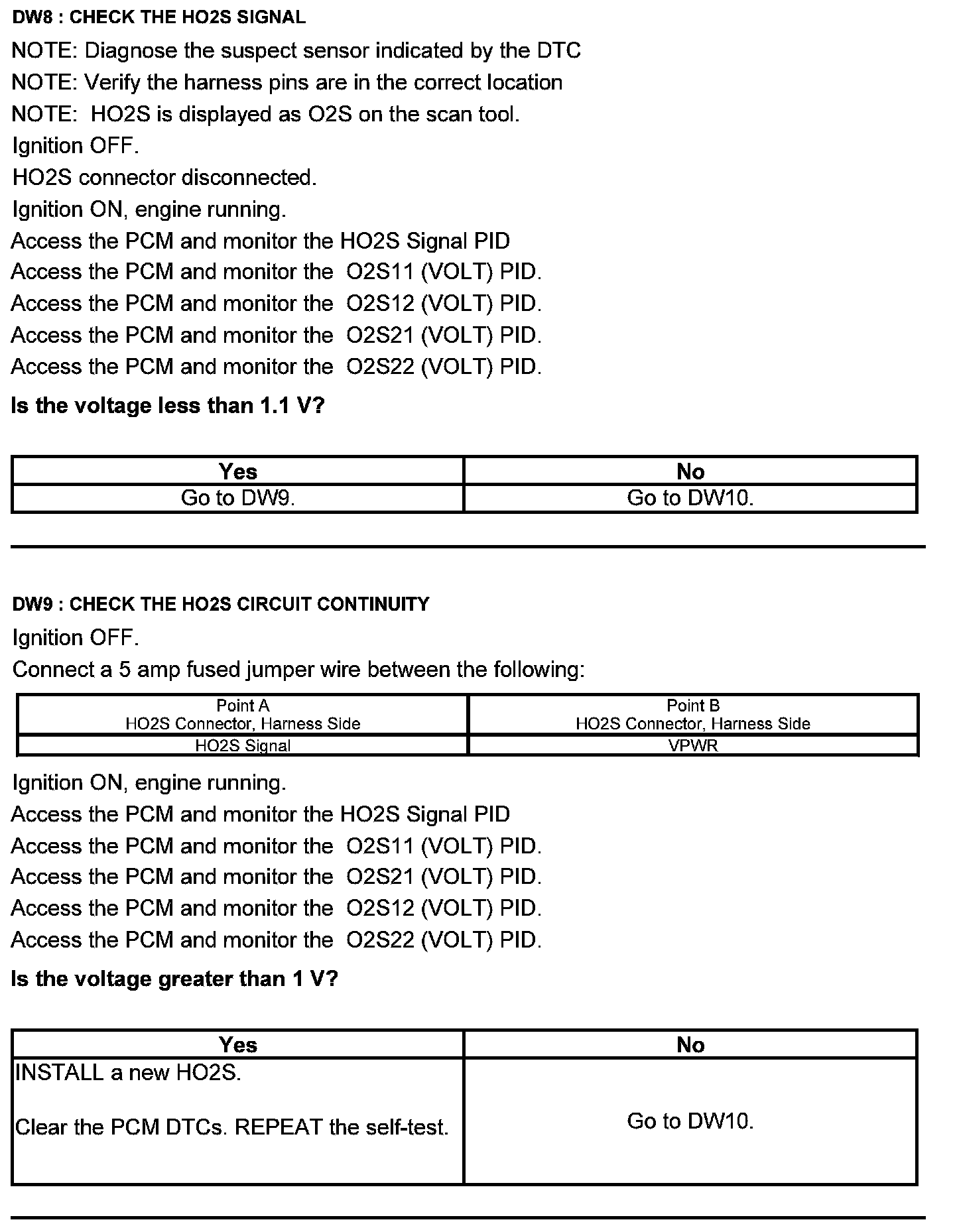 Test DW: Heated Oxygen Sensor (HO2S)