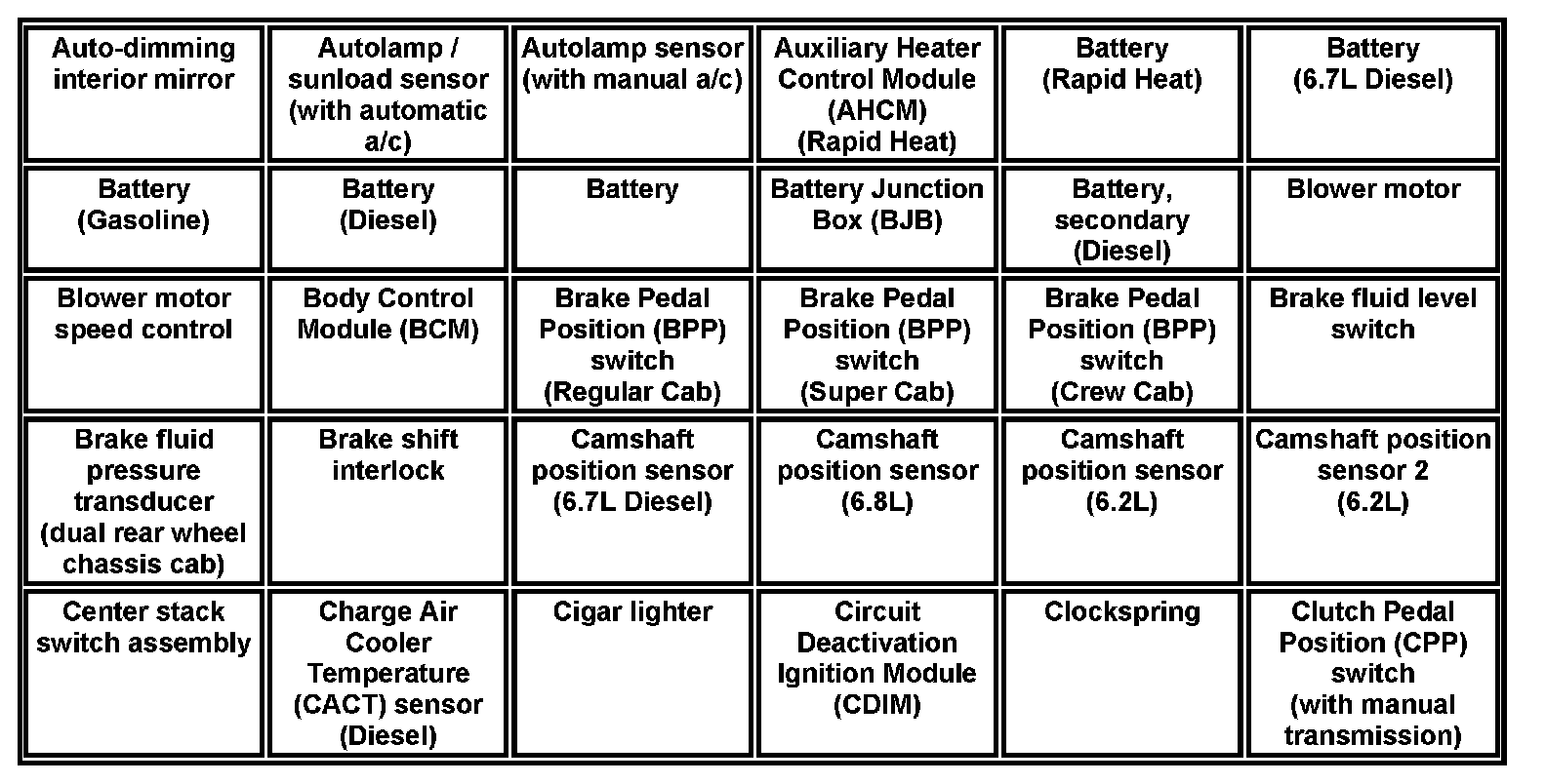 A-Z Component List