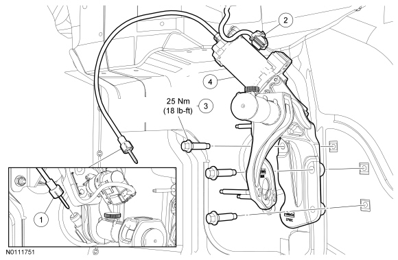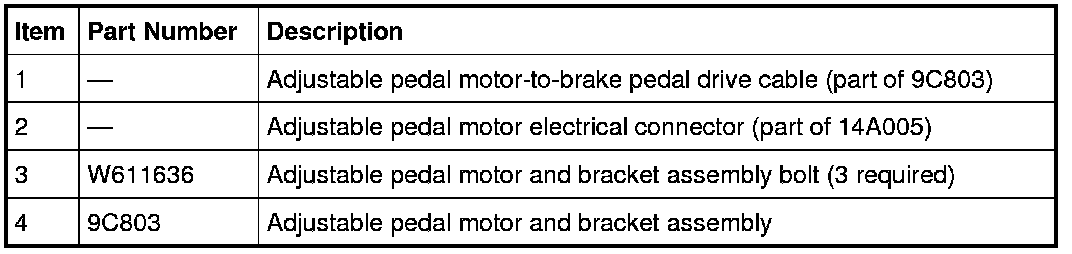 NOTE: The brake pedal and the accelerator pedal must be indexed when installing a new cable or a new adjustable pedal motor and bracket assembly.