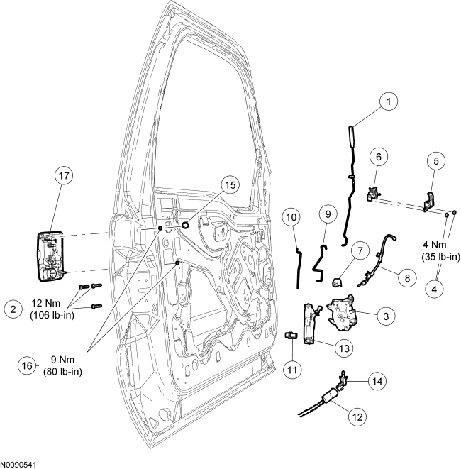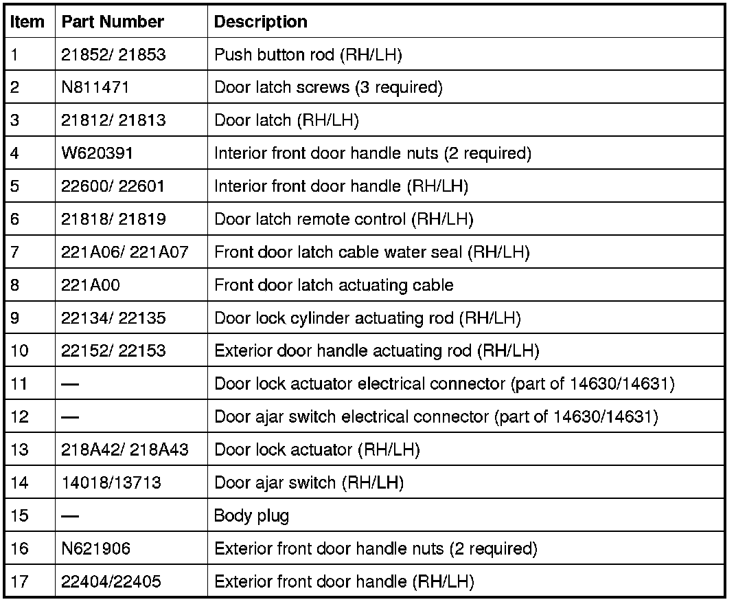Front Door Handles, Locks and Latches - Exploded View