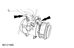 NOTE: A new A/C compressor may come equipped with an A/C clutch disc and hub, A/C compressor pulley and A/C clutch field coil already installed. If these components are not pre-installed, it will be necessary to transfer these parts from the old A/C compressor to the new compressor prior to installation of the A/C compressor if suitable for reuse.