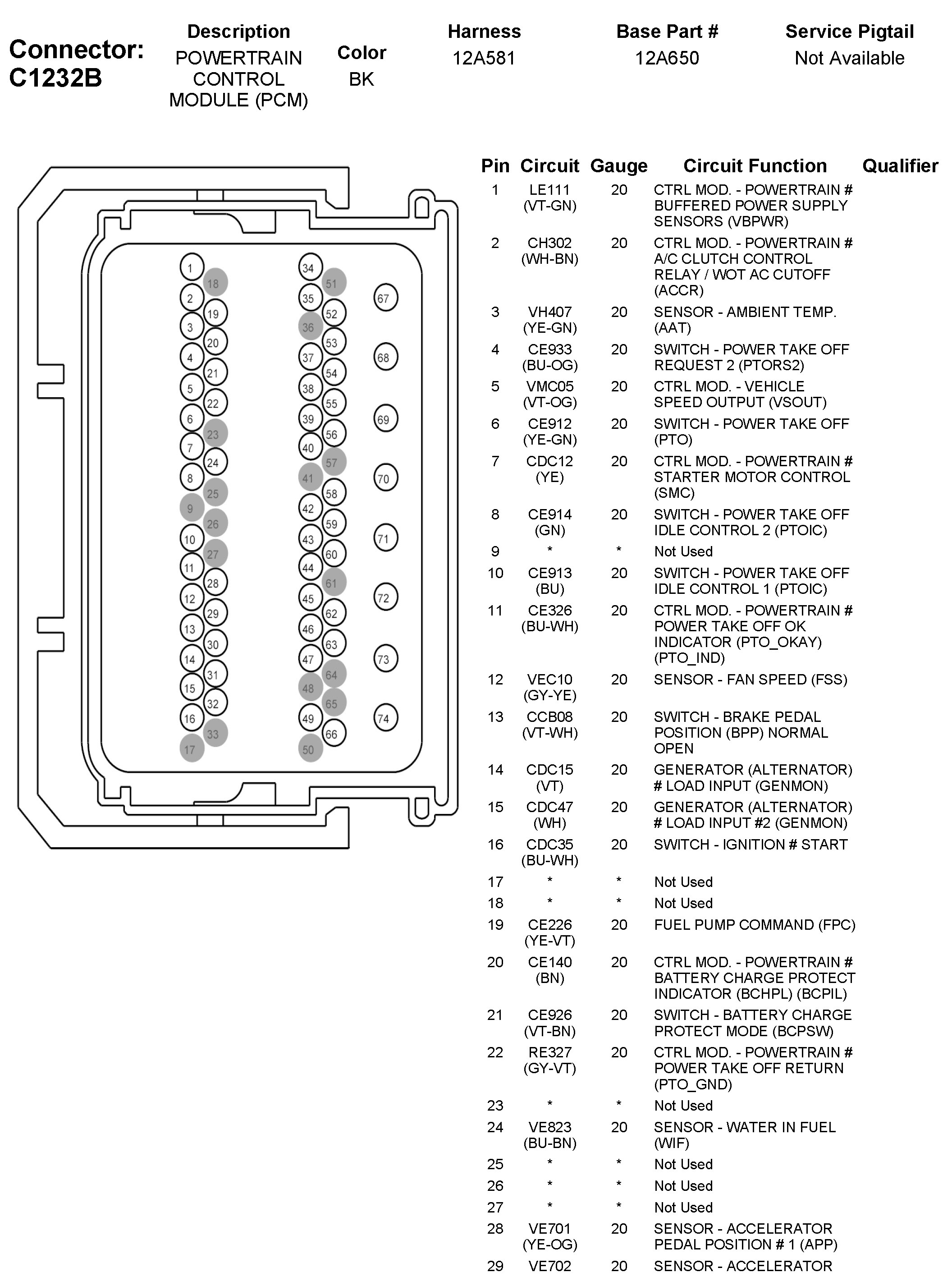C1232B Powertrain Control Module (PCM)