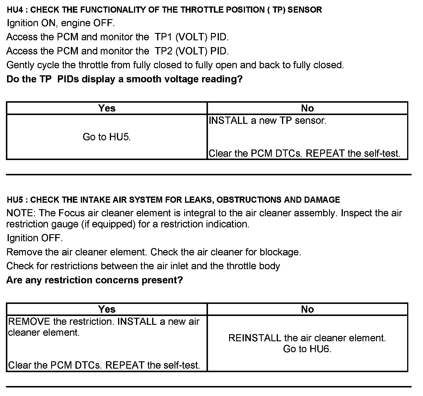 Test HU: Intake Air Systems