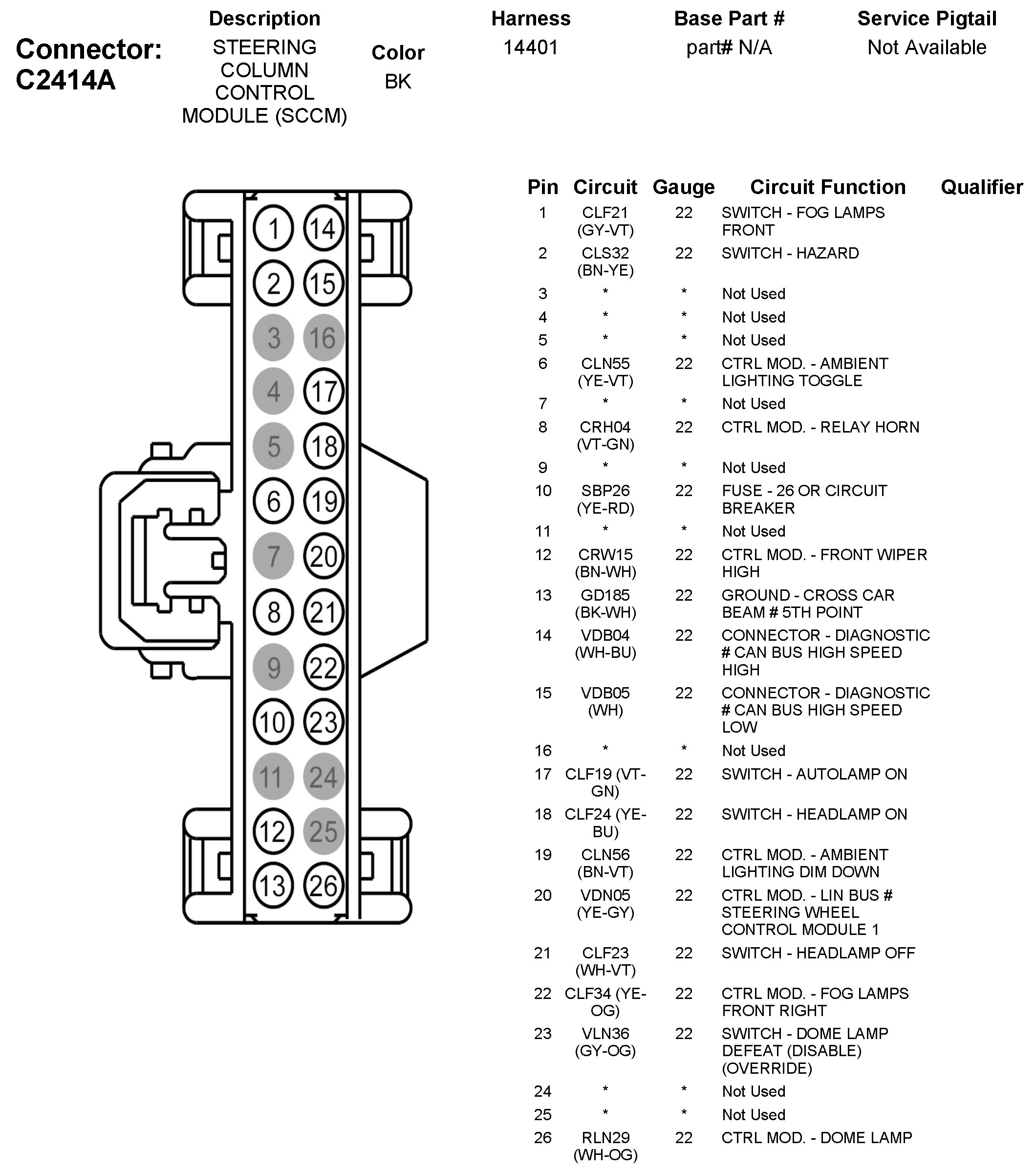 C2414A Steering Column Control Module (SCCM)