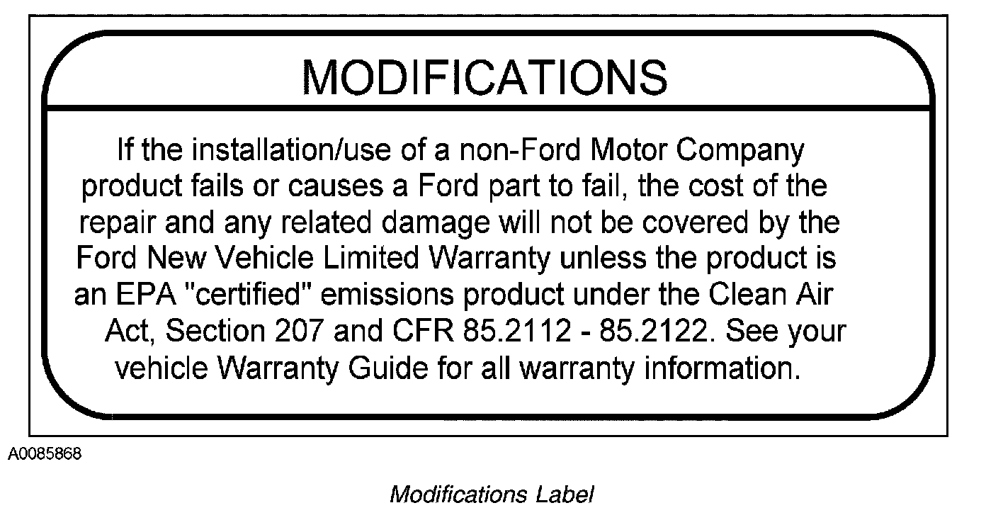Modifications or additions to the vehicle may cause incorrect operation of the OBD system. Performance modifications that cause a Ford part to fail may not be covered by the Ford New Vehicle Limited Warranty. Carefully install burglar alarms, cellular telephones, and CB radios. Do not install these devices by tapping into or running wires close to the powertrain control system wires or components.