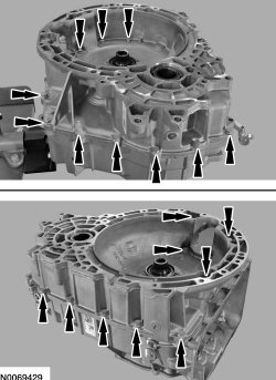 217. NOTICE: Make sure the sealing surface of both the transaxle case and the torque converter housing are clean, dry and free of oil or the silicone will not seal the transaxle case.
