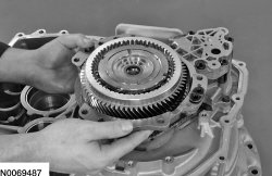 204. NOTICE: Support the torque converter housing using blocks of wood, or damage to the torque converter housing may occur.