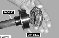205. Assemble the Handle 205-153 on the Cover Axle Seal Installer 307-582A and install a new RH halfshaft seal on Cover Axle Seal Installer 307-582A.