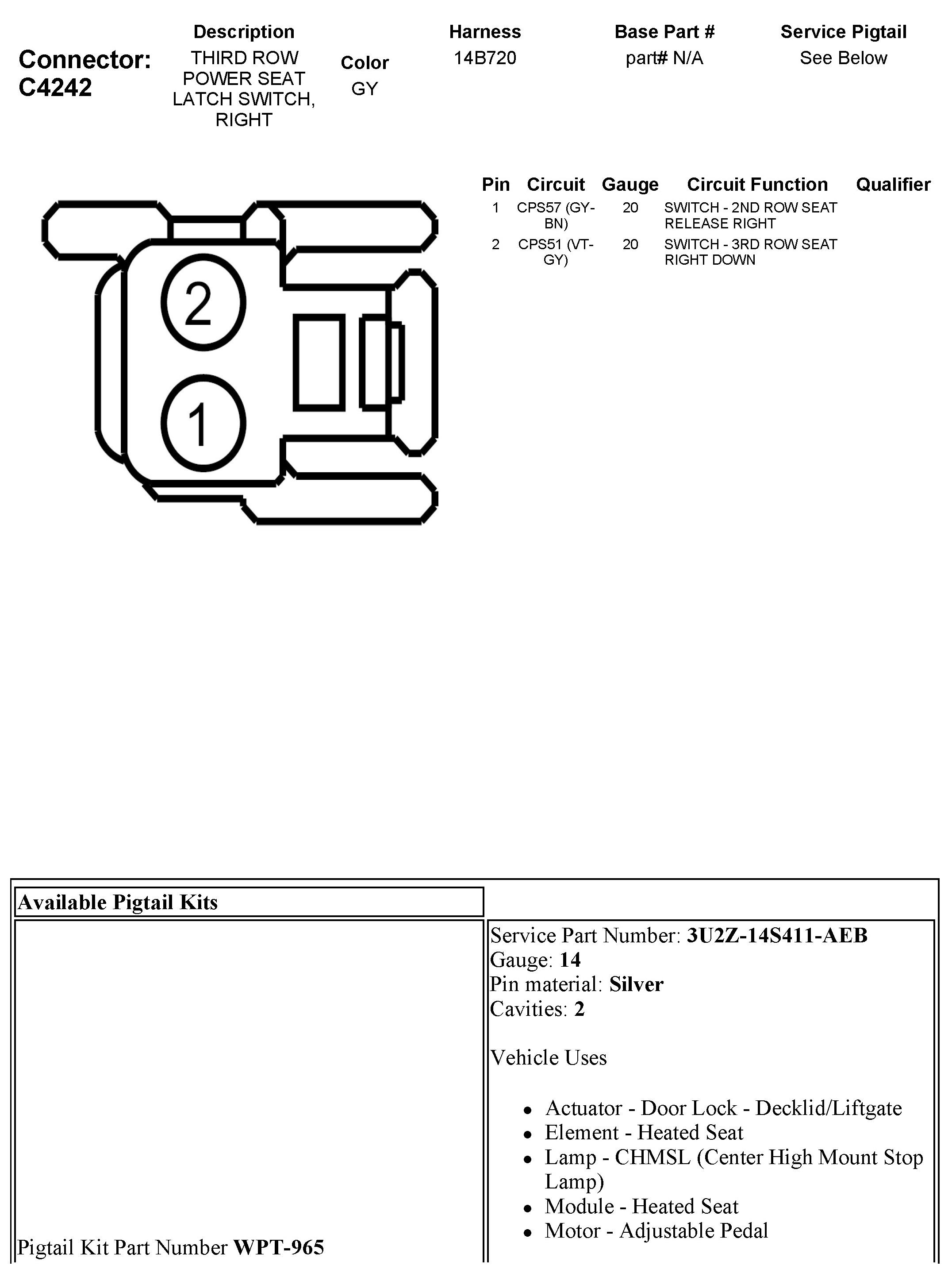 C4242 Third Row Power Seat Latch Switch, Right