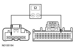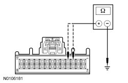 - Measure the resistance between ground and HVAC module C228B-21, circuit VHA18 (YE/GN), harness side.