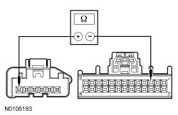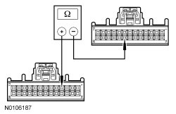 - Measure the resistance between HVAC module C228A-4, circuit RH111 (GY/BU), harness side and HVAC module C228B-21, circuit VHA18 (YE/GN), harness side.