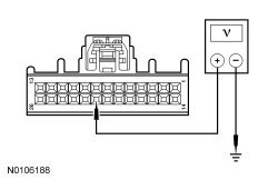 - Measure the voltage between ground and HVAC module C228B-21, circuit VHA18 (YE/GN), harness side.