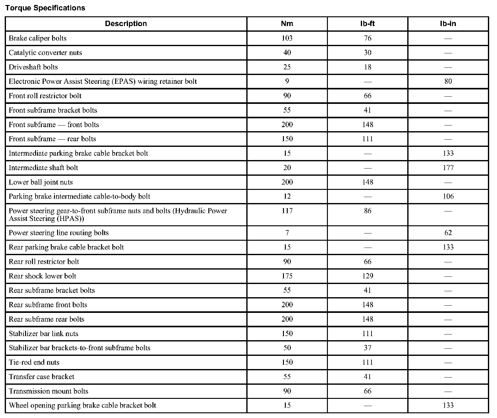 Torque Specifications