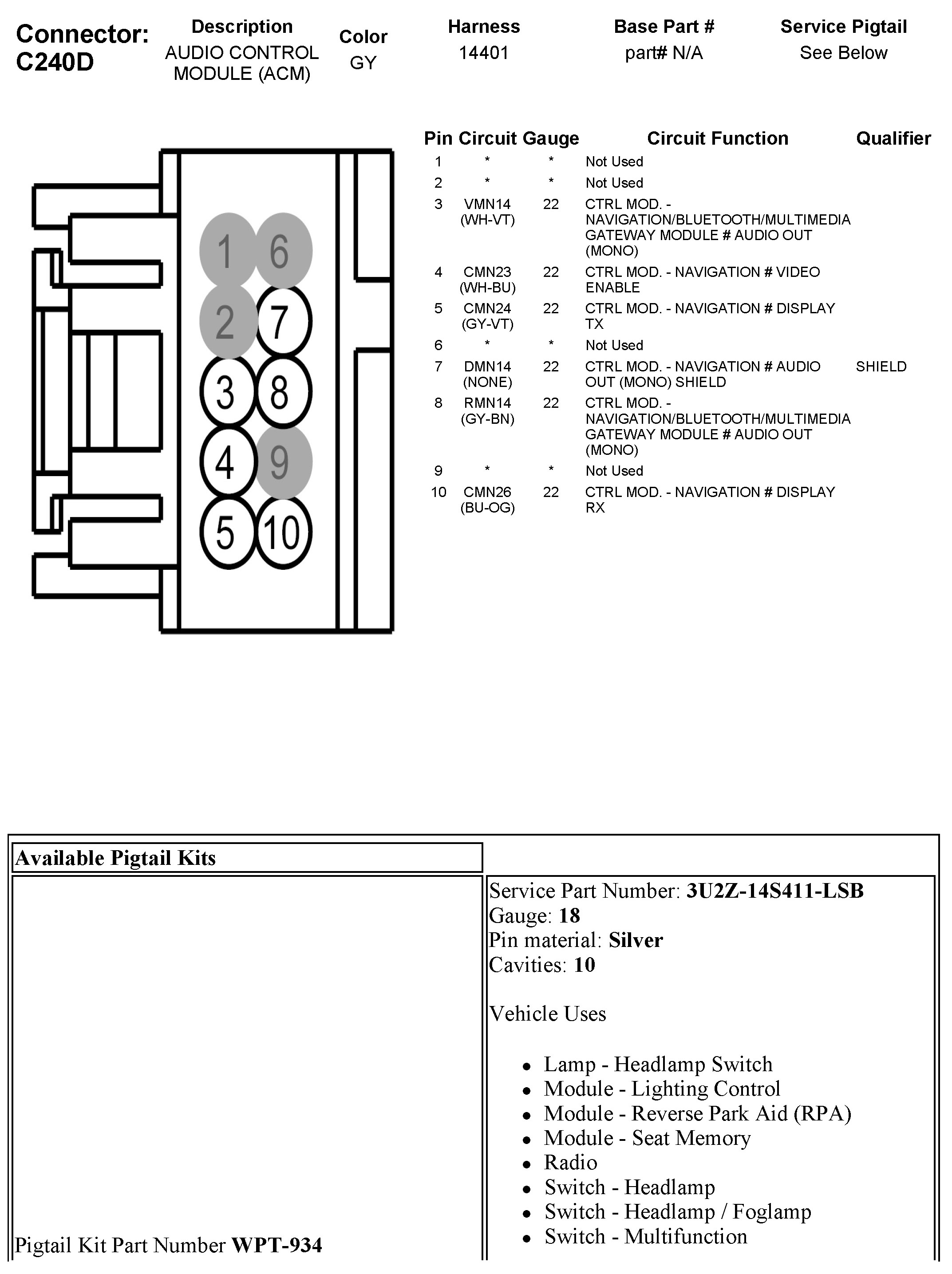 C240D Audio Control Module (ACM)