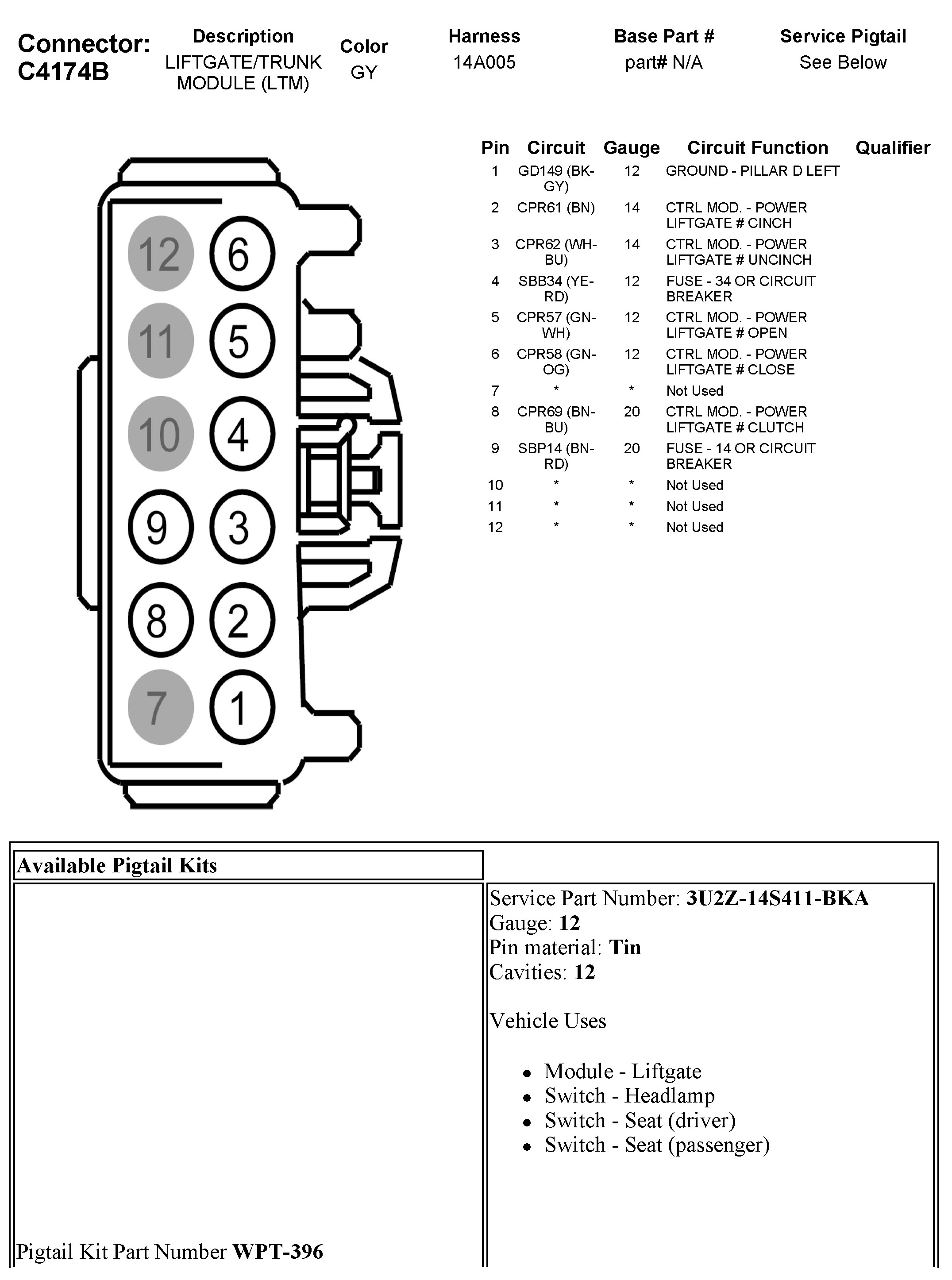 C4174B Liftgate/Trunk Module (LTM)