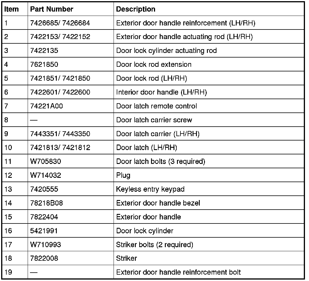Front Door Handles, Locks and Latches - Exploded View