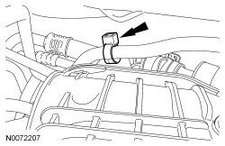 71. Attach the EVAP (Evaporative Emission) tube pin-type retainer to the upper intake manifold.