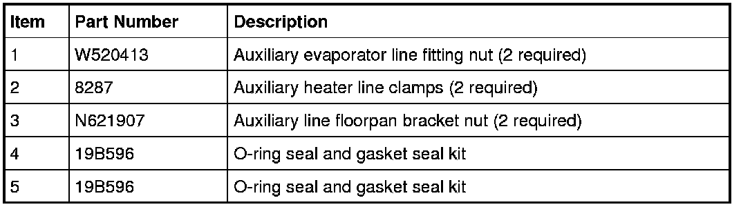 6. Remove the auxiliary evaporator line fitting nuts at the floorpan connection and disconnect the fittings.