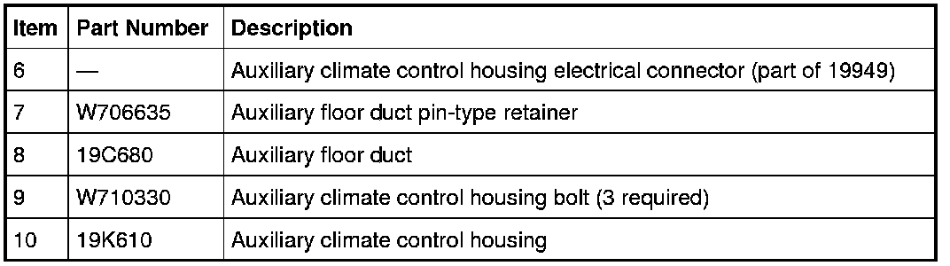 9. Disconnect the auxiliary climate control housing electrical connector.