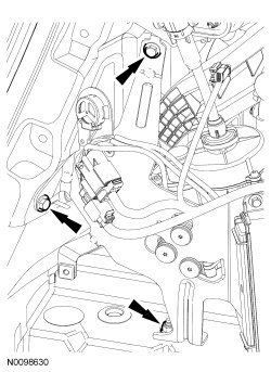 8. Remove the 2 auxiliary line floorpan bracket nuts.