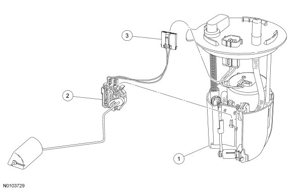 1. Remove either the Fuel Pump (FP) module or fuel level sensor assembly. For additional information, refer to Fuel Pump Module Fuel Pump Module or Fuel Level Sensor Fuel Level Sensor.