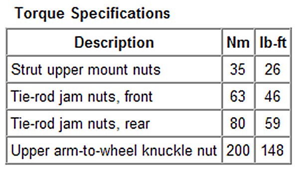 Torque Specifications:
