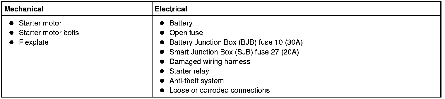 NOTE: The anti-theft system must be functioning correctly before a logical starting system diagnosis can be carried out. Address anti-theft system concerns before continuing. Refer to Antitheft and Alarm Systems.
