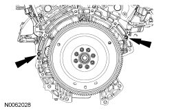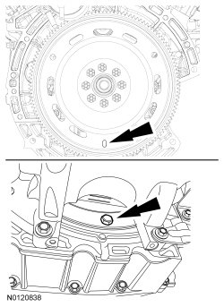 - Install the first torque converter bolt in the slotted hole on the flexplate.