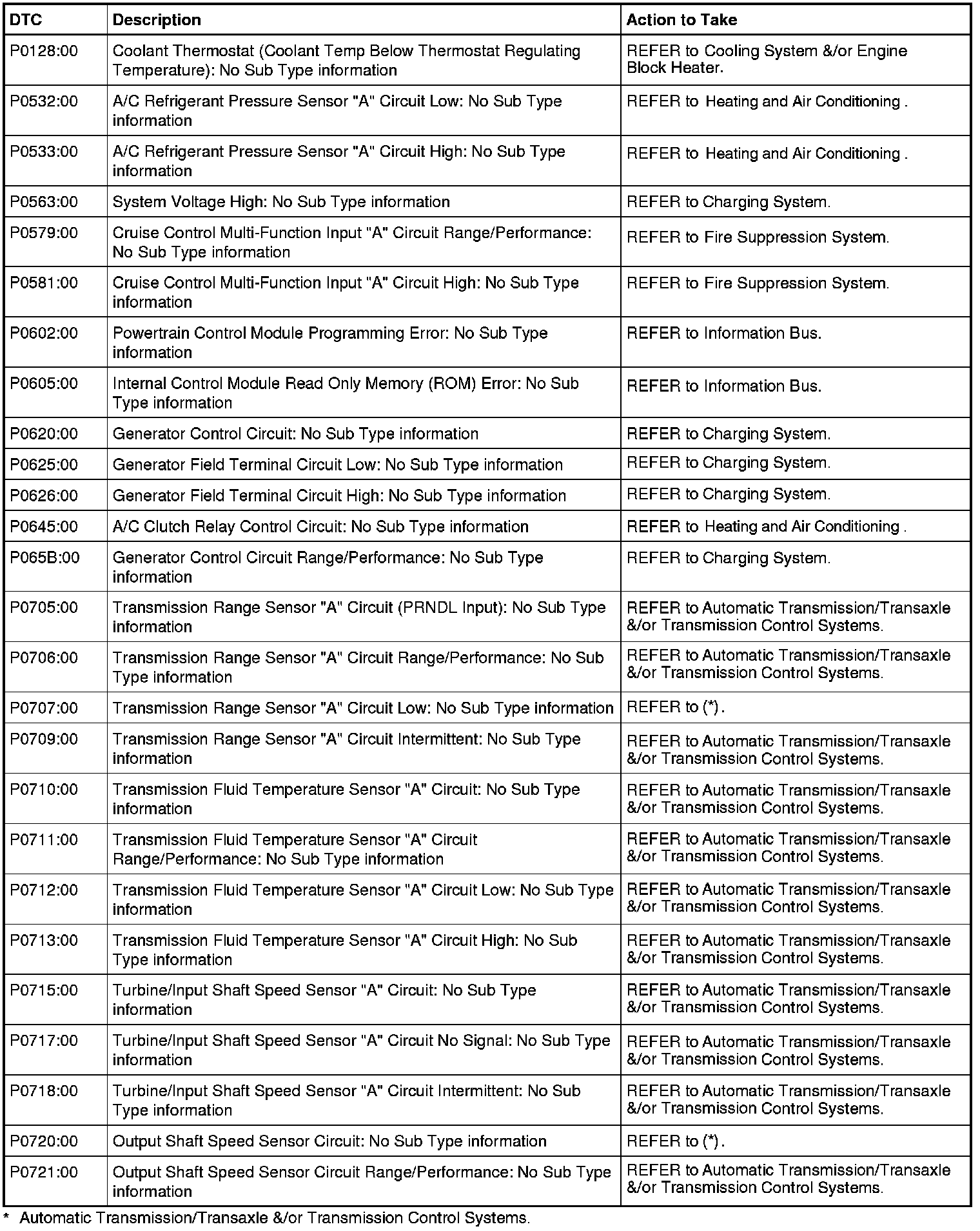 PCM DTC Chart