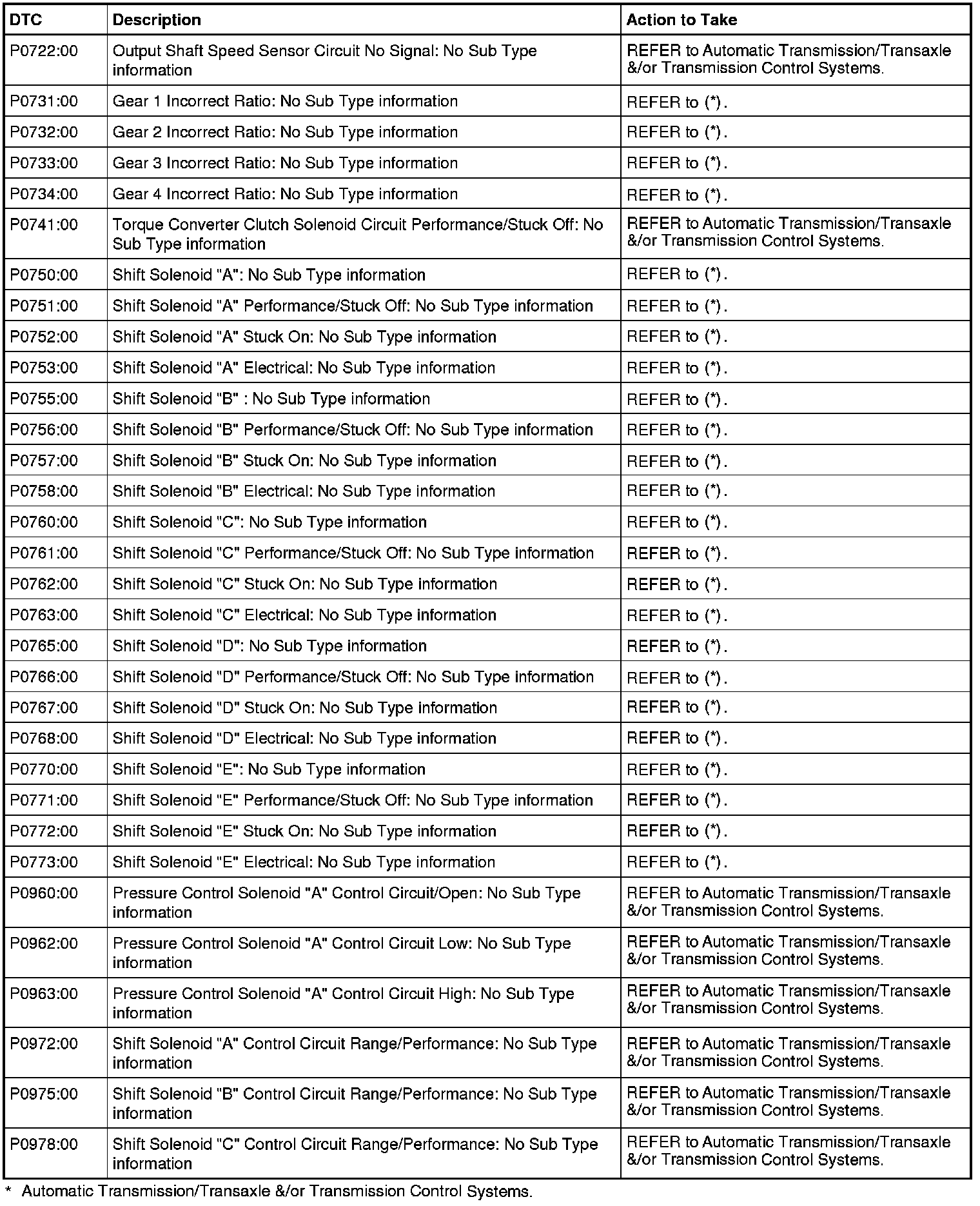 A L L Diagnostic Trouble Codes ( DTC )