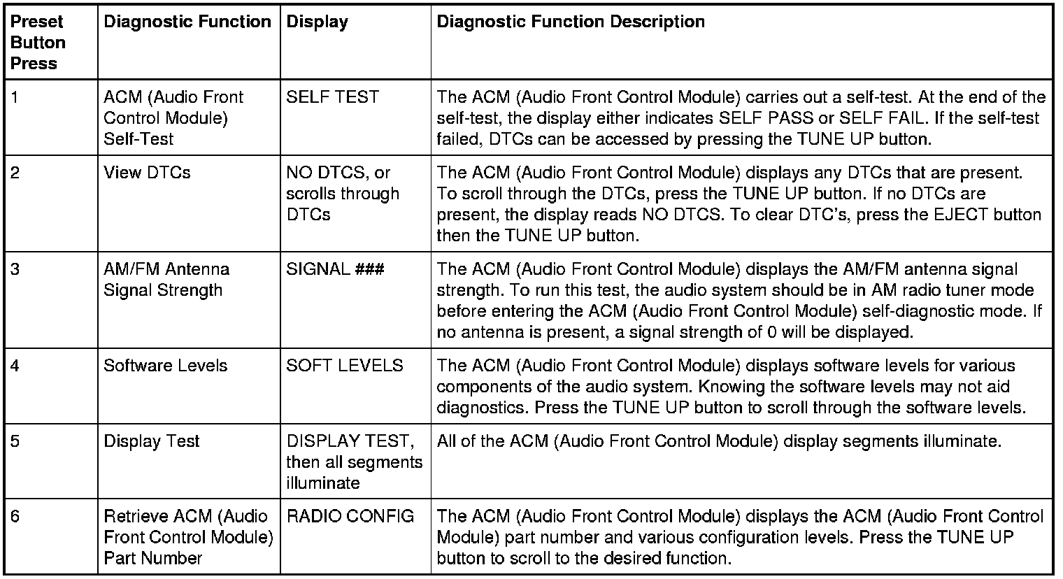 Audio Control Module (ACM) Self-Diagnostic Mode
