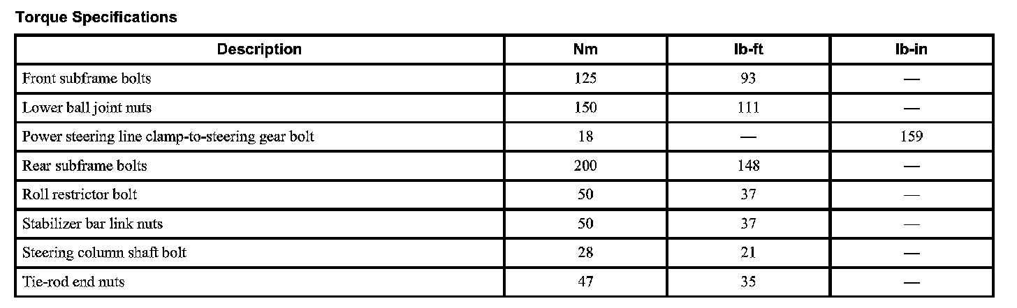 Subframe: Specifications