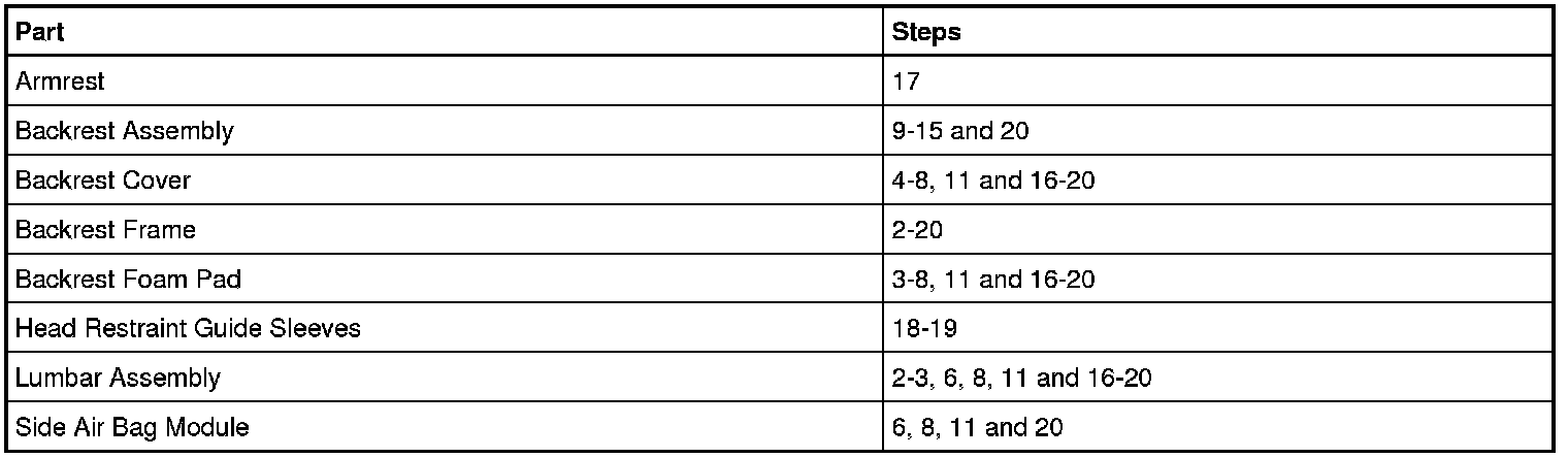 Seat Backrest Components- Removal Steps